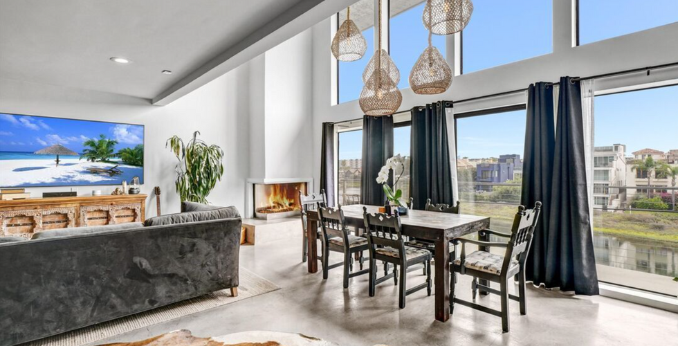 ALL UTILITES INCLUDED in this sought after Marina del Rey condo on the Peninsula. Located Just steps to the sand, this amazing, three-story town home has great energy and feels fresh and welcoming. Its located in the center of the peninsula offering the ultimate costal lifestyle experience. It is Beautifully furnished and equipped with everything you need to move right in and get busy relaxing. The main living area covers an entire floor with soaring ceilings, floor-to-ceiling windows and glass doors that open out to a sizable balcony with sweeping views of the canal and main channel. Concrete flooring, chic custom lighting, and a sparkly, crystal filled corner fireplace create a warm ambiance. The kitchen includes stainless appliances and sleek counters including an open bar to the dini ng/living area all which provide a wonderful and functional environment for great entertaining. The two bedrooms are separated nicely on different floors for total privacy. The primary bedroom is spacious, bright and has views of the canal and plenty of closet space. The en-suite, spa-like bathroom has designer tile, a huge, striking, free-standing tub and an even bigger, separate shower. Cool, Gucci designer wallpaper adds a playful touch of whimsy! The 2nd bedroom is on the top level and has an attached loft which makes a great office area with views for days as well as a large, covered patio/balcony with ocean views where you can enjoy the sun set every night! Two-car gated, garage with direct access and Tesla Charging station makes this the perfect luxury beach pad. A completely separate but attached studio may be available for additional rent. 3months is ok. Please call for more info.